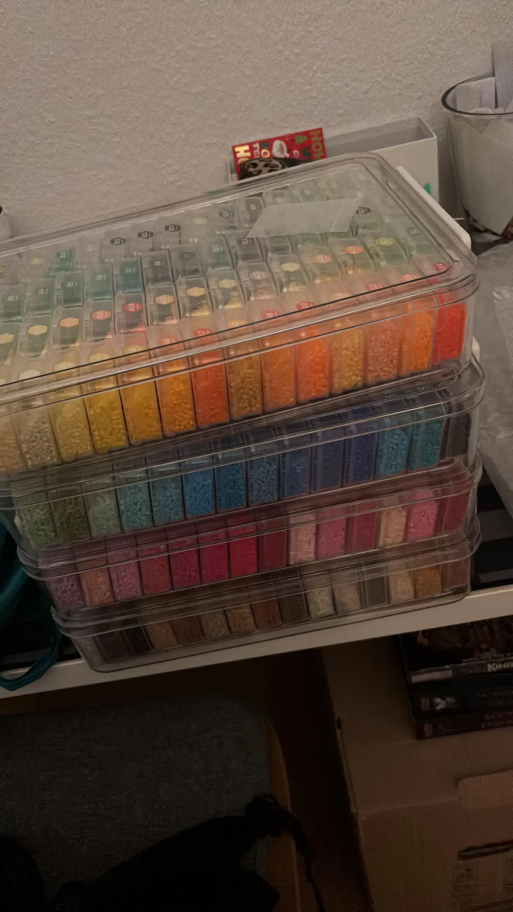 These beads come sorted in their little containers with coordinated stickers. They also melt really well with my heat press (HTVRONT brand) and the variety of colours are amazing. The customer service was top tier in answering all my concerns with the packages. By the way, when you order this set, it comes in 2 separate packages (2 bead cases in each box/package) to ensure everything stays in tact. The fuse bead toolkit it comes with is a randomised colour which makes it exciting to see what colour you get which is also amazing but sometimes the beads get stuck in the little tray when pouring beads back into the containers. The kit also comes with extra little goodies such as, glue, tweezers, jump rings, extra white & black bead refills( not in the photos) and a handwritten thank you card.